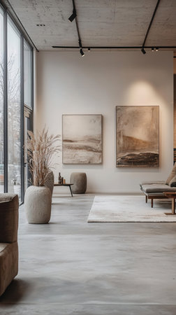 A stylish and modern living room setting showcases contemporary furniture and abundant natural light, creating an inviting atmosphere perfect for relaxation and gatherings.