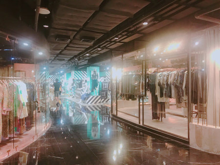 luxury and fashionable european different clothes shop in modern mall