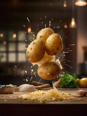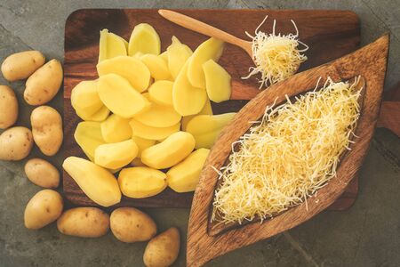 Sliced potatoes for cooking, Food ingredients, Table top view