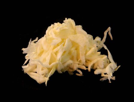 Sliced white cabbage on a yellow cutting board close up. Selective focus.