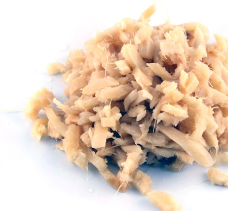 Isolated Shredded ginger. Fresh ginger root or rhizome isolated on white background cutout.