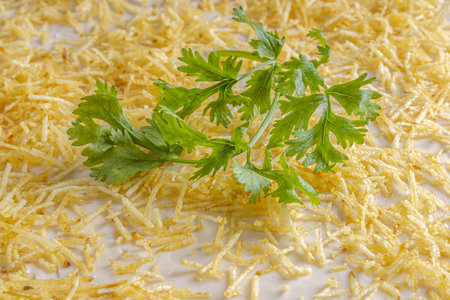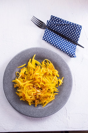 Healthy homemade crispy shredded hashbrowns with salt and pepper