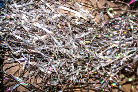 Colorful tinsel, party holiday background. Gift box decorative filler. Beautiful backdrop design for advertising.