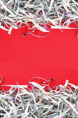 The white shredded paper on red background.
