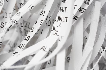Paper documents cut into strips with a paper shredder