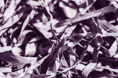 Abstract real photo beauty blur background. Bunch heap pile long narrow leave nature dry material rubbish stack. Copy space texture. Maze life confusion concept. Dark light tone Black lilac purple