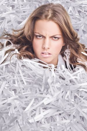 Young Businesswoman covered by shredded papers