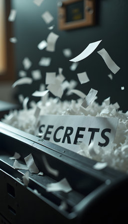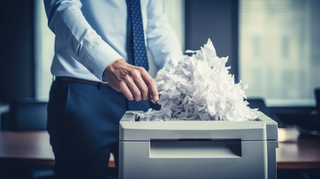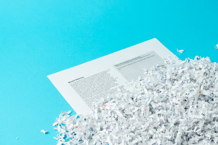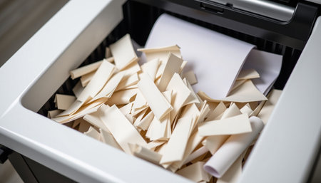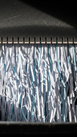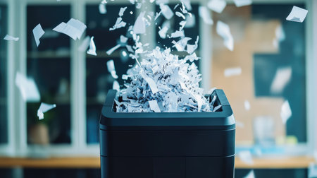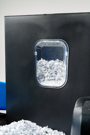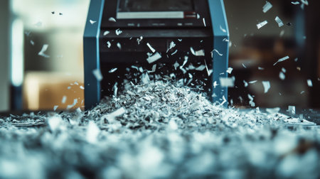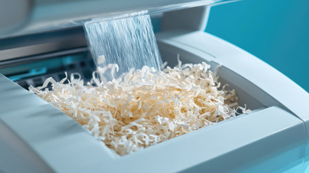 A shredded documents in paper shredder, showcasing remnants of confidential papers. scene conveys sense of security and privacy
