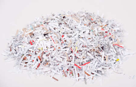 Shredded paper in a pile on a white background