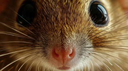 This image features a close-up shot of an adorable rodent showcasing its large eyes and whiskers, highlighting the beauty of wildlife in nature.