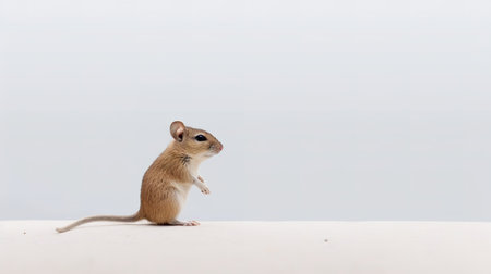 A delightful close-up of a charming mouse holding a bright red fruit in its tiny paws, set against a soft neutral background, capturing the essence of playful wildlife.