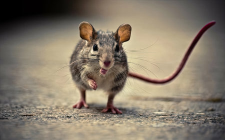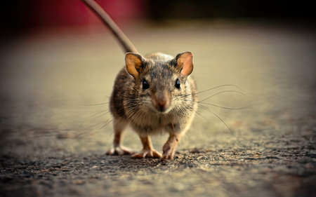 Curious rodent coming to investigate a lone grain of rice, a simple yet telling scene