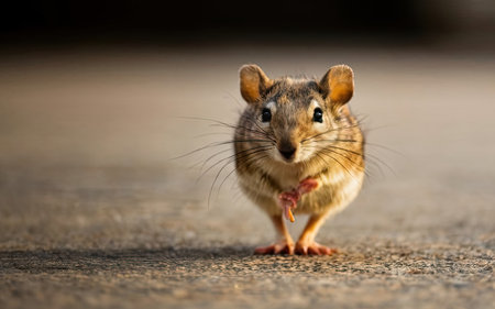 Cute little mouse on the road. Selective focus with shallow depth of field.