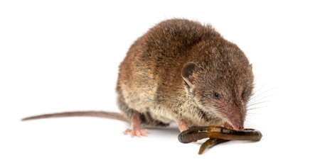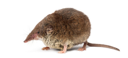 Closeup of small gray shrew in the road. The genus Sorex includes many of the common shrews of Eurasia and North America,