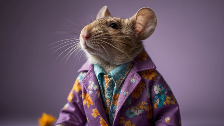 A charming small mouse sits gracefully among lush greenery and delicate flowers, embodying the beauty of wildlife in its natural habitat. Perfectly captured in a serene moment, this image showcases the intricate details and vibrant colors of nature.