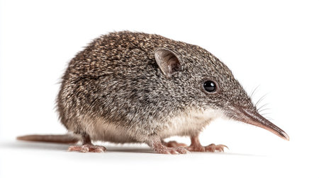Australian pygmy hedgehog, Ocygna cinerea, in front of white background