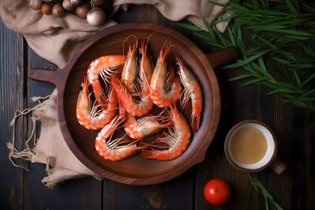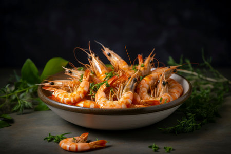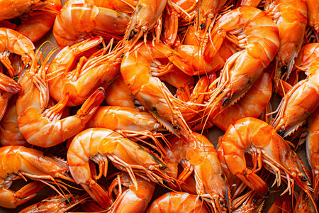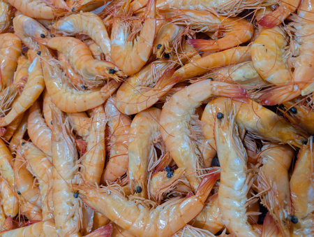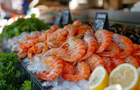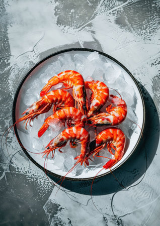 Fresh shrimp on ice ready for preparation and cooking in a vibrant setting