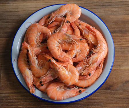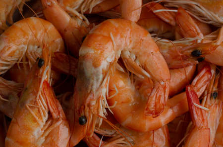 Cooked Atlantic shrimps. Close up. A traditional food of coastal cuisine