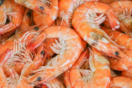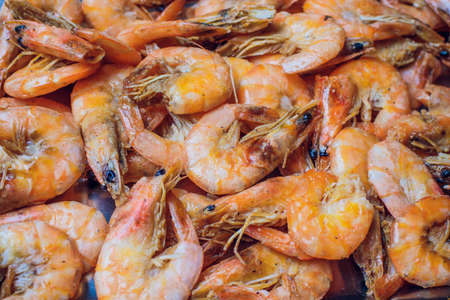 spicy shrimps. Cooked Shrimp. a lot of boiled peeled shrimp. Concept of healthy diet.