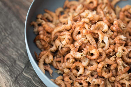 Peeled German Friesland north sea shrimps or crabs in bowl
