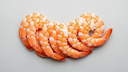 close-up of boiled shrimp that lean against each other to form a heart shape