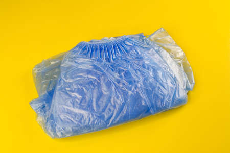 Disposable shoe covers on yellow background close up