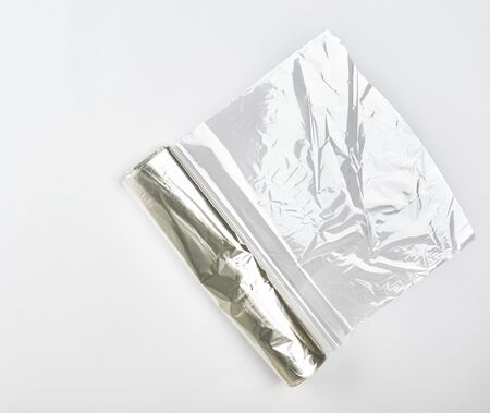 roll of transparent film, sleeve for baking products in the oven on a white background, top view
