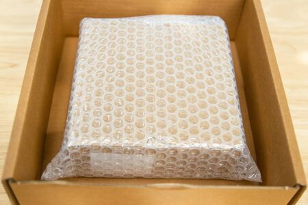 Bubbles covering the box by plastic wrap for protection product cracked or insurance During transit