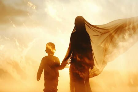 Ethereal Connection: Mother and Son Silhouettes
