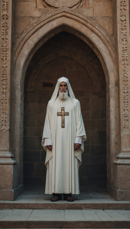 A figure with a halo and flowing robes --ar 3:2 Job ID: 48ca3b6f-9f7b-4395-8f23-191066463174