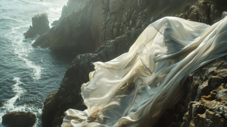 The fabric almost seems to have a life of its own dancing effortlessly along the rugged cliffside
