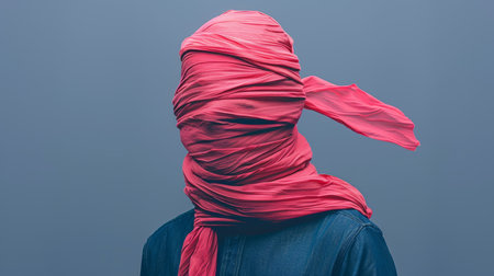 Unrecognizable Person, Head Wrapped in Pink Fabric, Symbolizing Identity, Censorship, or Silence.