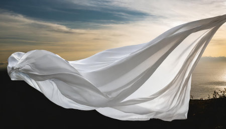 piece of cloth flying in the wind against the sunset sky, background