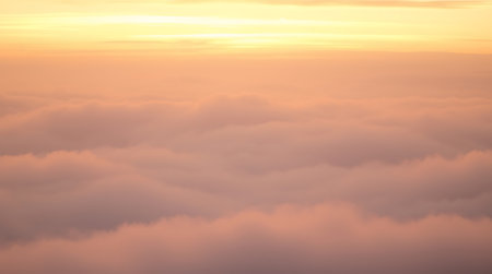 Dawn over the clouds. Wonderful calm heavenly landscape.
