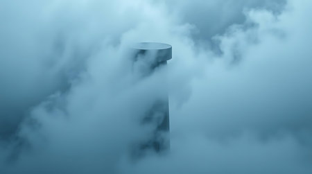 Misty mountain peak surrounded by clouds, serene atmosphere. Nature and tranquility concept