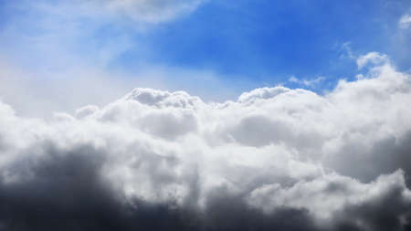 Dramatic cloudscape with dark blue sky and white fluffy clouds