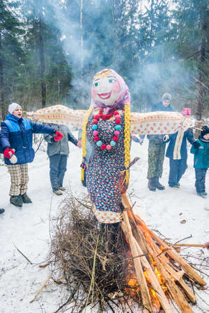 spring festive burning of carnival effigy. rite of farewell to winter. pancake week