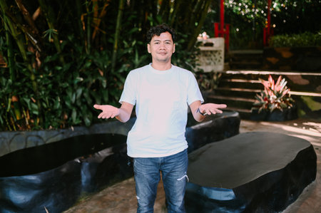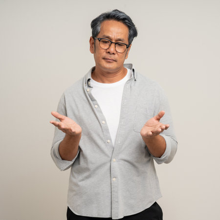 A Southeast Asian man looks inquisitively, as if asking a question. Perfect for themes of curiosity, communication, and seeking information.