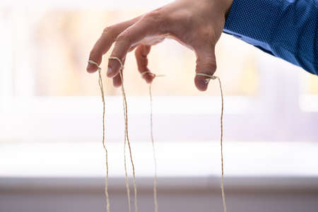 Manipulation concept. Hand of abuser manipulate with string.