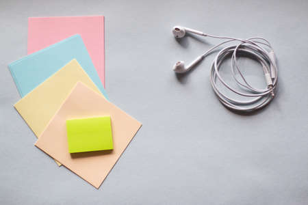 Colored sticky notes on a light background. The view from the top. Space for text. Horizontal photos