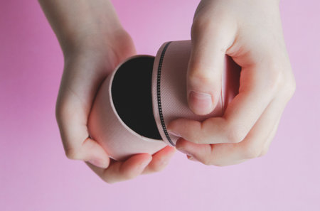 Hands hold set of magnets, illustrating their magnetic properties as they are pulled apart, emphasizing the interaction and movement. High quality photo.