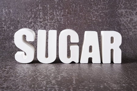 Word Sugar made from white concrete letters on the gray background.