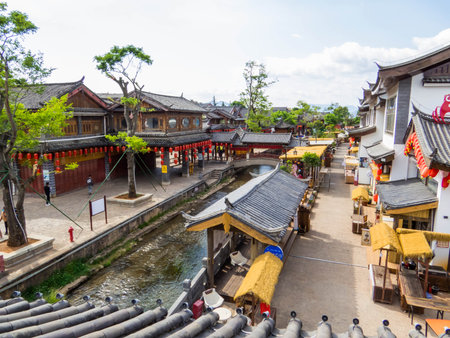 Lijiang, China - April 10,2017 : Scenic view of the Old Town of Lijiang in Yunnan, China. The Old Town of Lijiang is a UNESCO World Heritage Site and also a famous tourist destination of Asia.