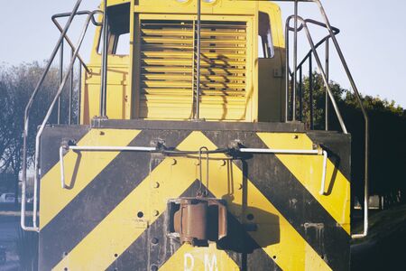 Low angle photo Front of old train led with Diesel Electric locomotives on the tracks of Thailand.