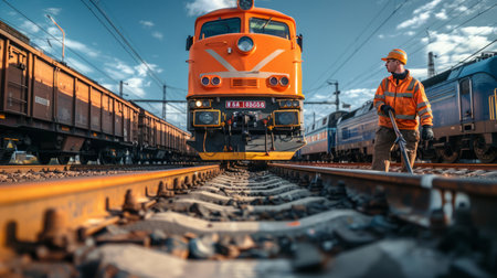 A railway worker standing beside a train at sunrise, highlighting the early morning routine and dedication of railway professionals
