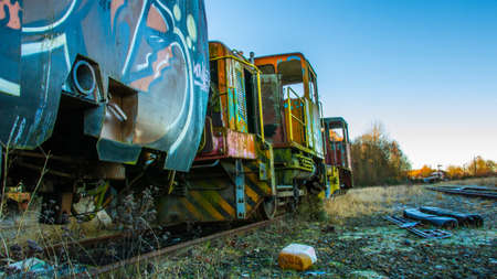 Old locomotive at the Landschaftspark Duisburg-Nord, a public park in the German city of Duisburg. The centerpiece of the park is formed by the ruins of a blast furnace complex shut down in 1985.
