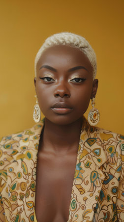 Elegant African Woman with Short Blonde Hair on Yellow Background