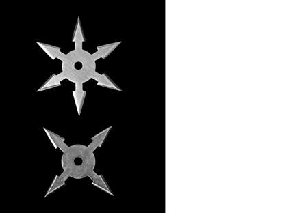 Closeup Ninja Star Shurikens on Black Background with Space for Text, Clipping Path