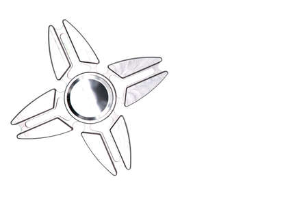 close up aluminum fidget spinner isolate on white background.
