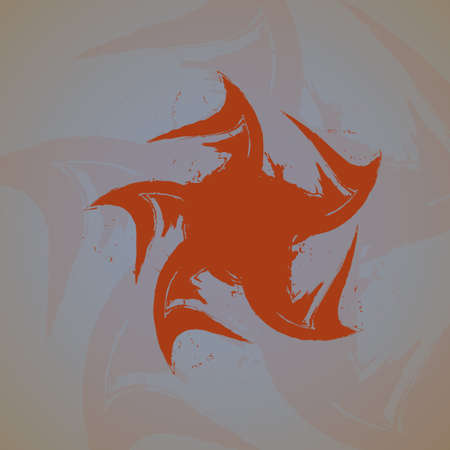 Throwing star shuriken, traditional Japanese ninja bladed weapon on red background. Kohga Ninja inscription.